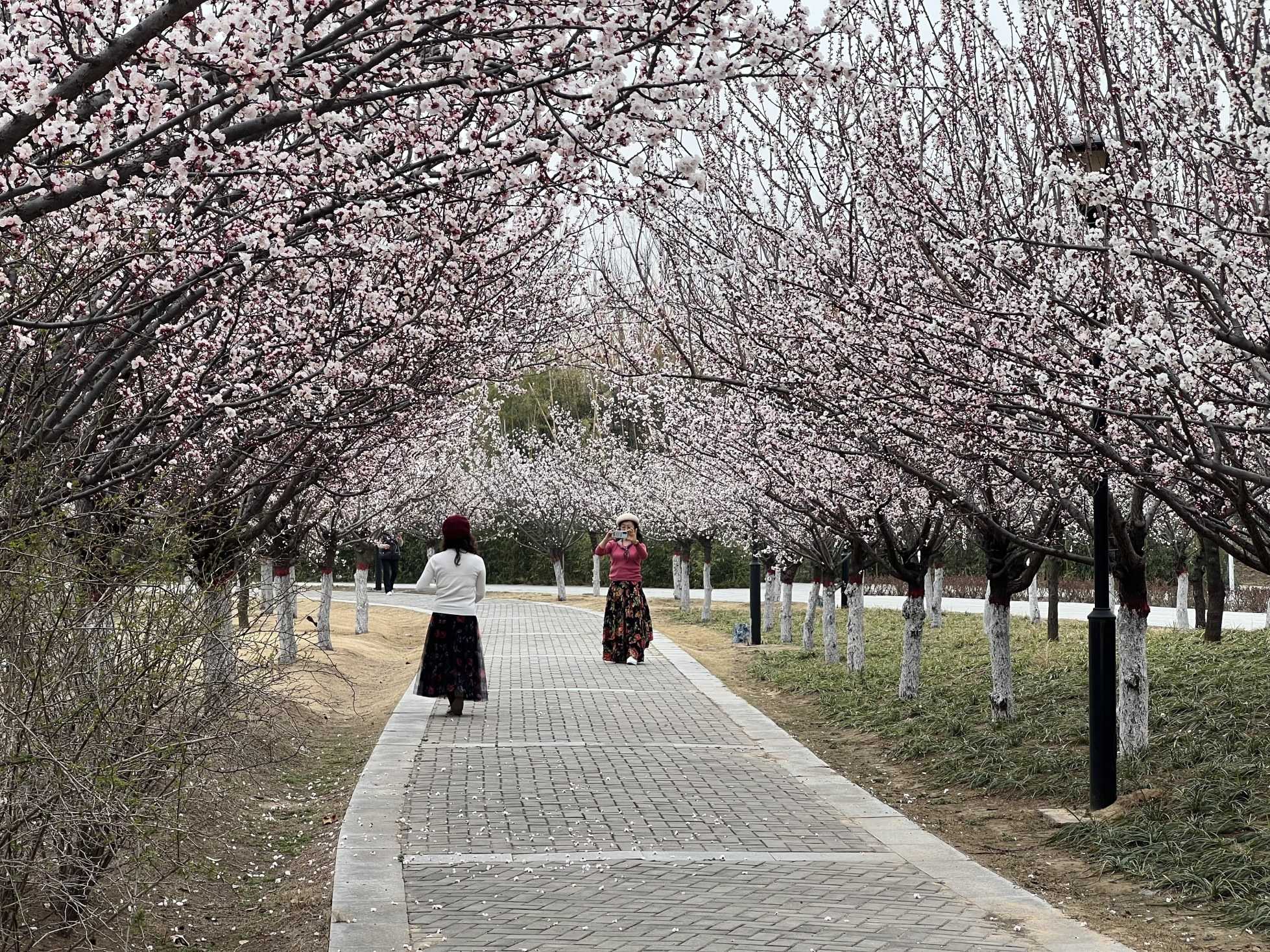 3月16日,不少市民走进中央公园。此时梅花已然盛开,粉嫩的杏花也迎风开放,公园俨然成了赏花胜地。