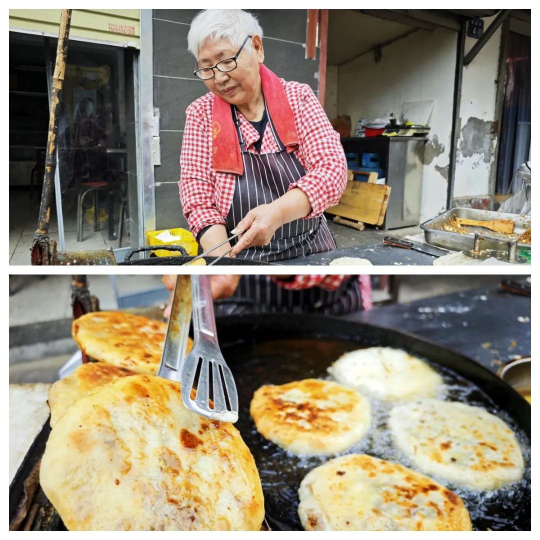 “肉盒,焦热……”4月11日早晨,市区引龙街与聚奎街交会处,77岁的马建华一边熟练地制作肉盒,一边扯开嗓子叫卖。在她的摊位前,几名顾客正排队等着香喷喷的肉盒出锅。