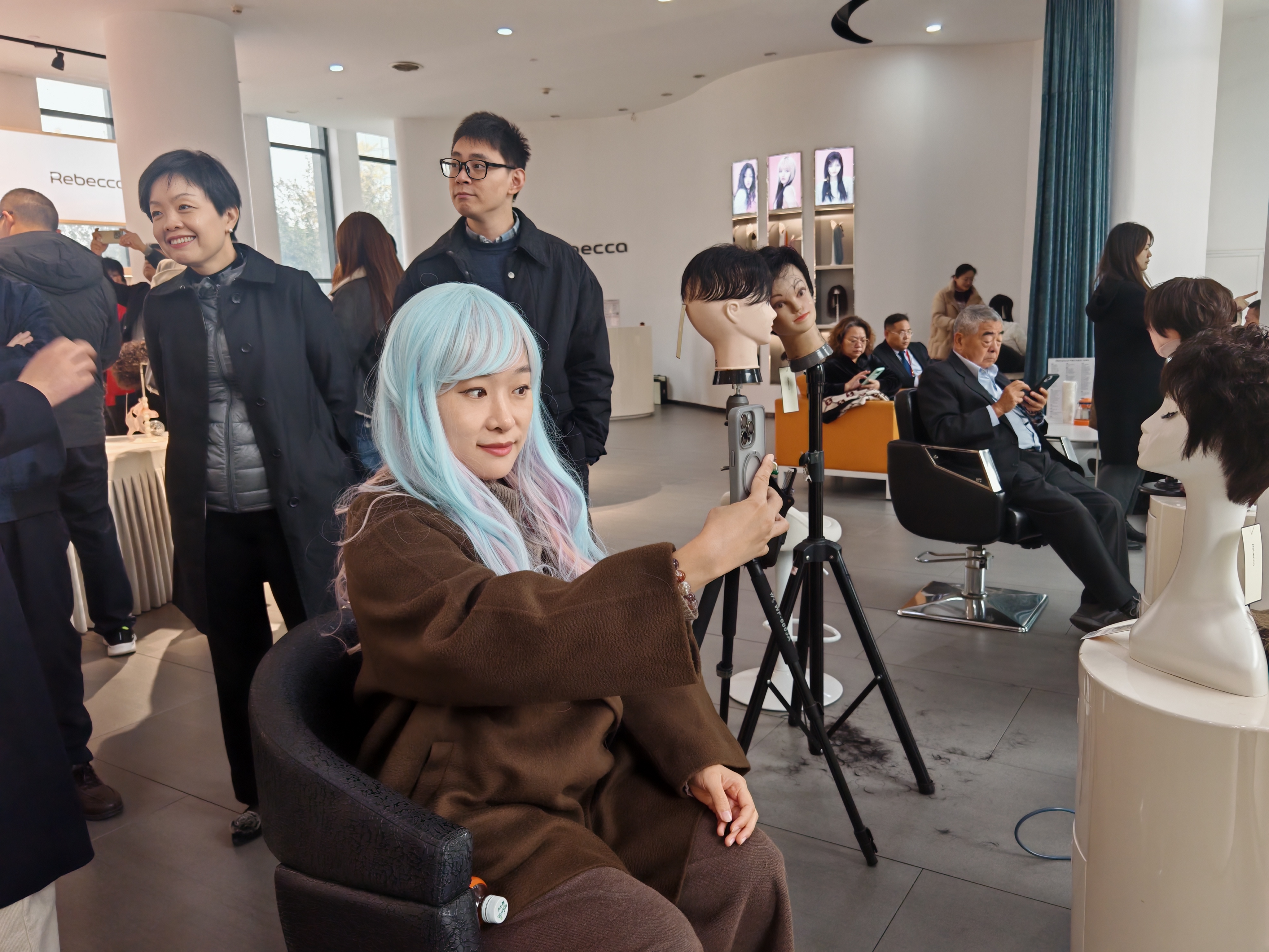 友邦保险管理公司财富管理副总裁、郑州大学香港校友会秘书长朱昱嘉兴致勃勃地戴上了一顶蓝粉相间的长卷发。对着镜子整理发尾时,她眼睛一亮:“我之前从没戴过假发,更没有体验过这样鲜艳的发色,没想到戴上竟没有丝毫违和感,效果超出想象。”朱昱嘉边说边拿出手机拍照留念,“为许昌的假发工艺点赞!”