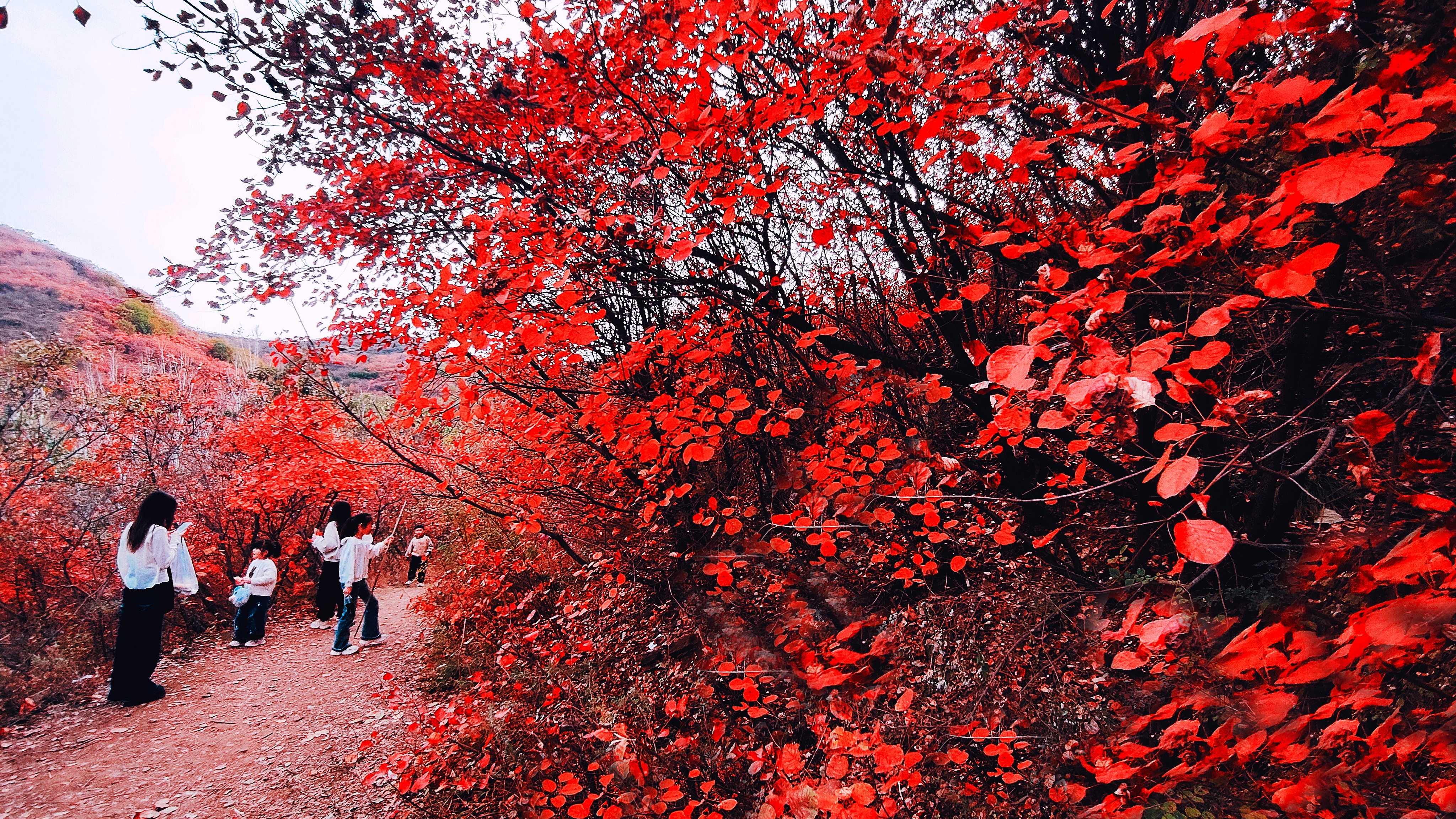 行走在天垌村,偶尔能遇见提着竹篮的老人,篮子里装着刚采的山楂、柿子。老人笑着与游客打招呼,那淳朴的笑容,和山间的红叶一样温暖。远处的磨盘山巅,几位摄影爱好者正举着相机,试图将“红叶满坡、石屋错落、溪水潺潺”的美景永远定格。