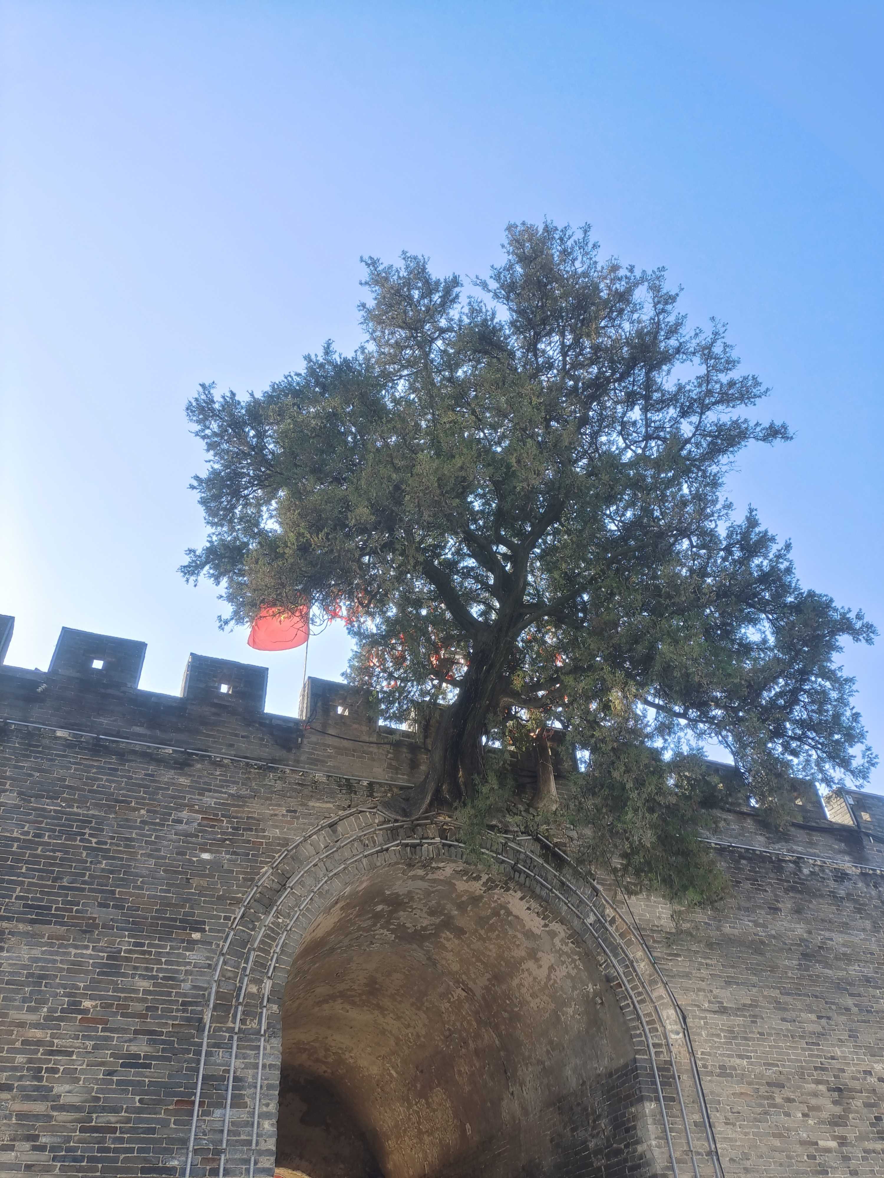奇景丨城门楼上长了一棵古柏