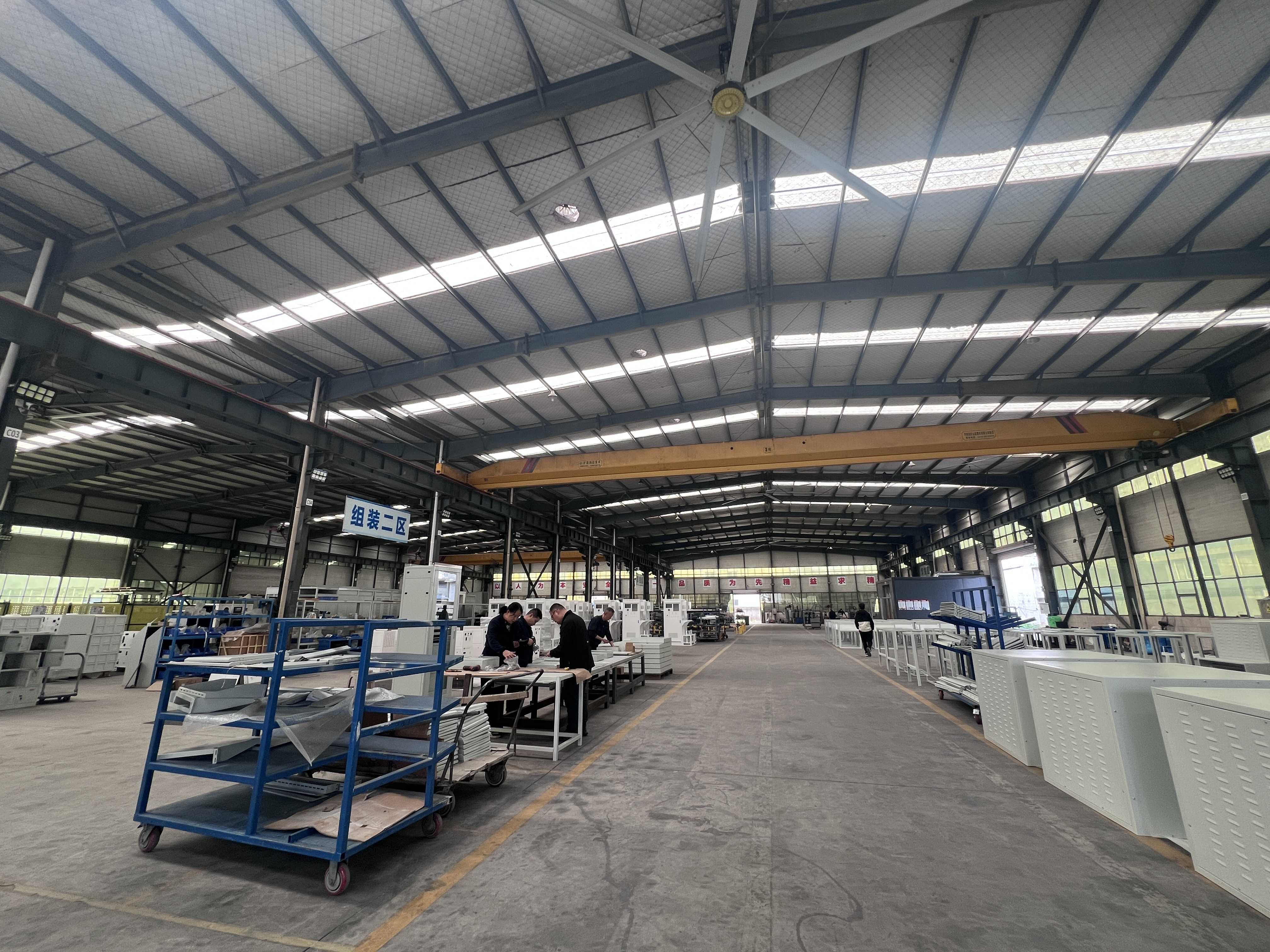 今年5月,为提升企业自动化生产水平,进一步扩大生产规模,满足日益增长的市场需求,胜邦电气整体搬迁至建安区,并投入1000万元建成面积达4000余平方米的现代化工厂,先后引进数控转塔冲床、高精密数控折弯机、大功率激光切割机等大型数控设备,其中,伺服数控转塔冲床采用伺服电机直接驱动,效率是同行业其他类型控转塔冲的2.5倍,能够实现压筋、成型及复杂图形高精度孔位的一次成型,冲压精度达到0.1毫米,边缘光滑无毛刺,确保产品拼装严丝合缝,配合激光焊接技术,产品整体美观度和防护等级得到极大提升,更好满足客户要求。