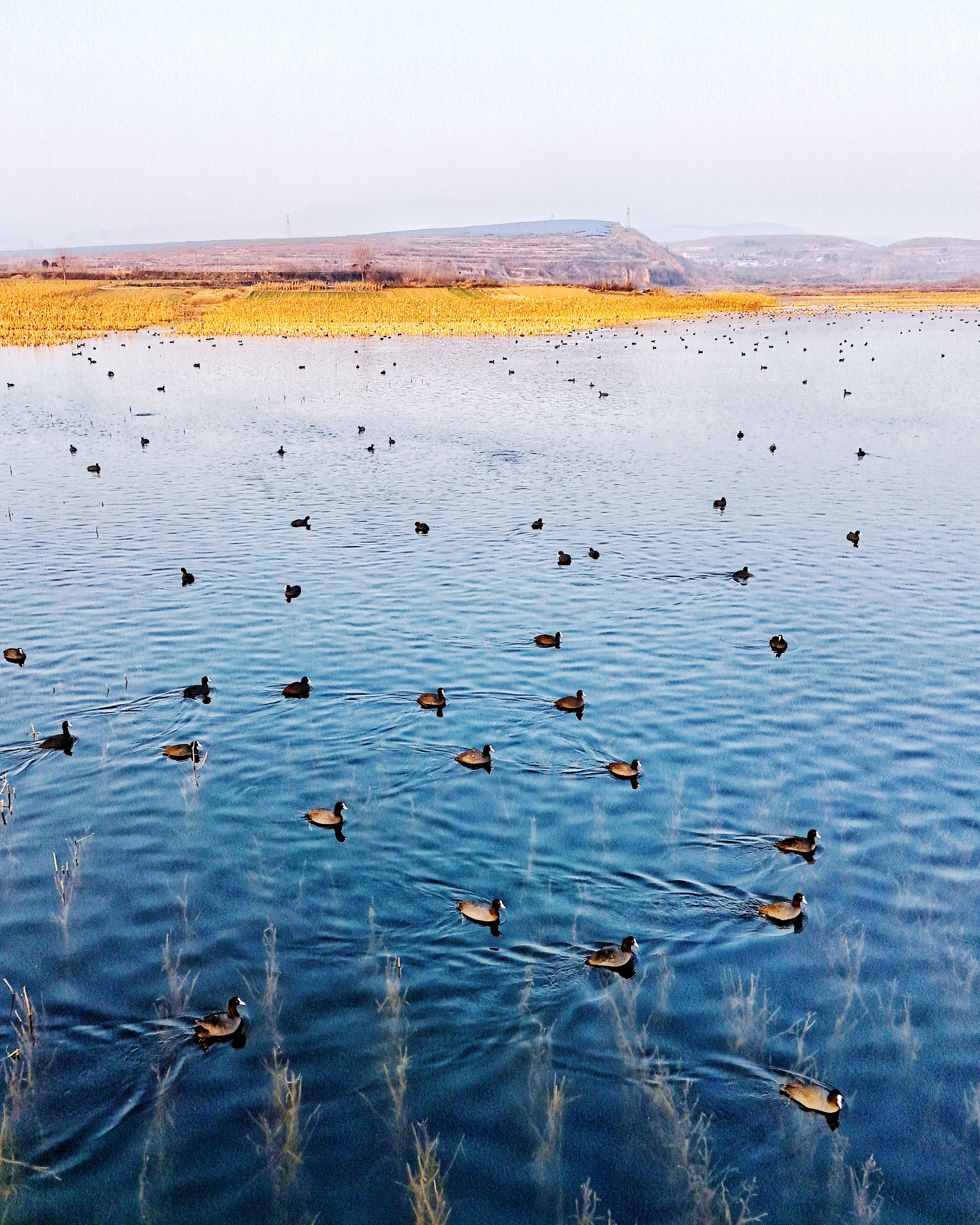 郑湾水库始建于1958年,库容量近500万立方米,历经60余年风雨,依然稳固坐落山间。近年来,禹州市深植“两山”理念,持续推进水利设施提质升级、推动河湖长制落地见效,不断提升环境治理精细化水平。如今的郑湾水库天蓝水清、草木繁茂,正是这样的优良生态环境,让越冬候鸟逐年增多,为冬日增添了生机。