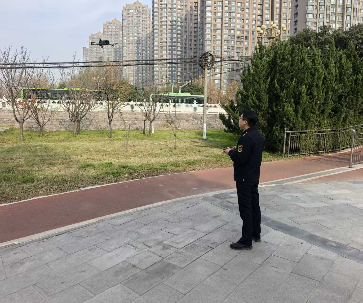 东城区综合执法局聚焦群众关切,接通许昌市智慧城管便民服务平台,推进市容秩序治理,通过“一屏通览、一网统管”的智慧系统,引入无人机巡查手段,应用于制止私搭乱建,检查建筑垃圾乱堆乱倒等日常监管,守护城市蓝天。