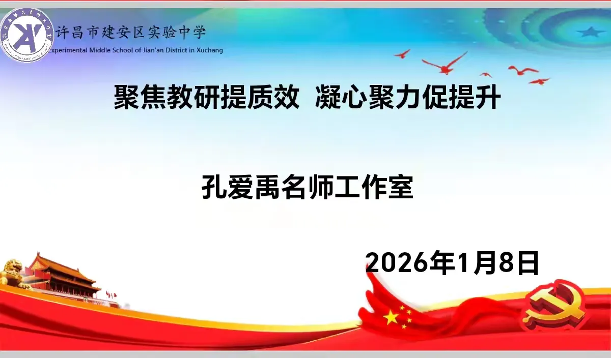 冬日渐深,研意正浓。2026年1月8日上午,孔爱禹名师工作室以一场干货满满的教研活动,拉开了新一年的专业成长序幕。学校领导袁书记、孔校长与工作室全体成员齐聚一堂,在思维的碰撞与经验的分享中,共探语文教学的高效路径与写作育人的实践之道。