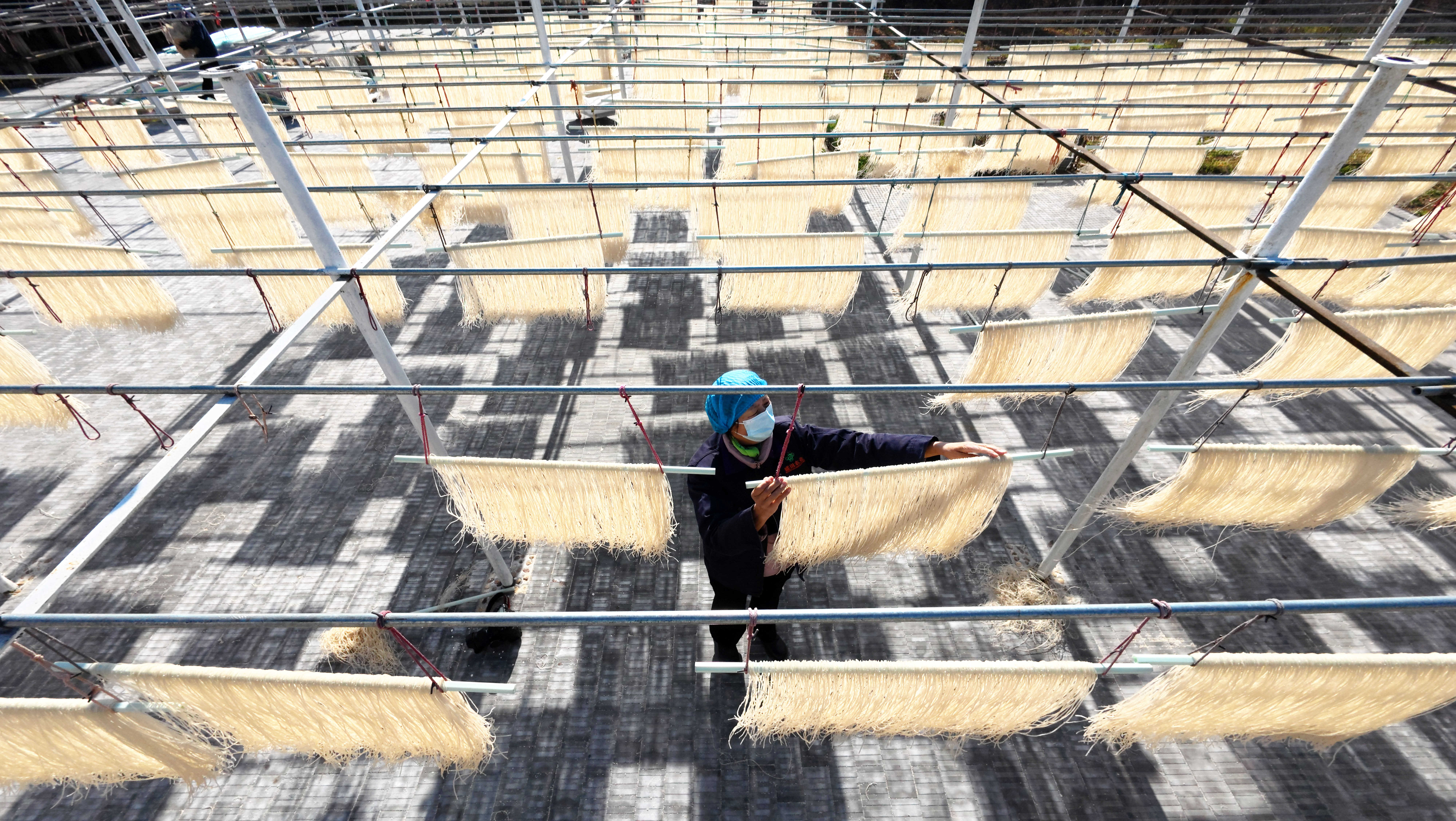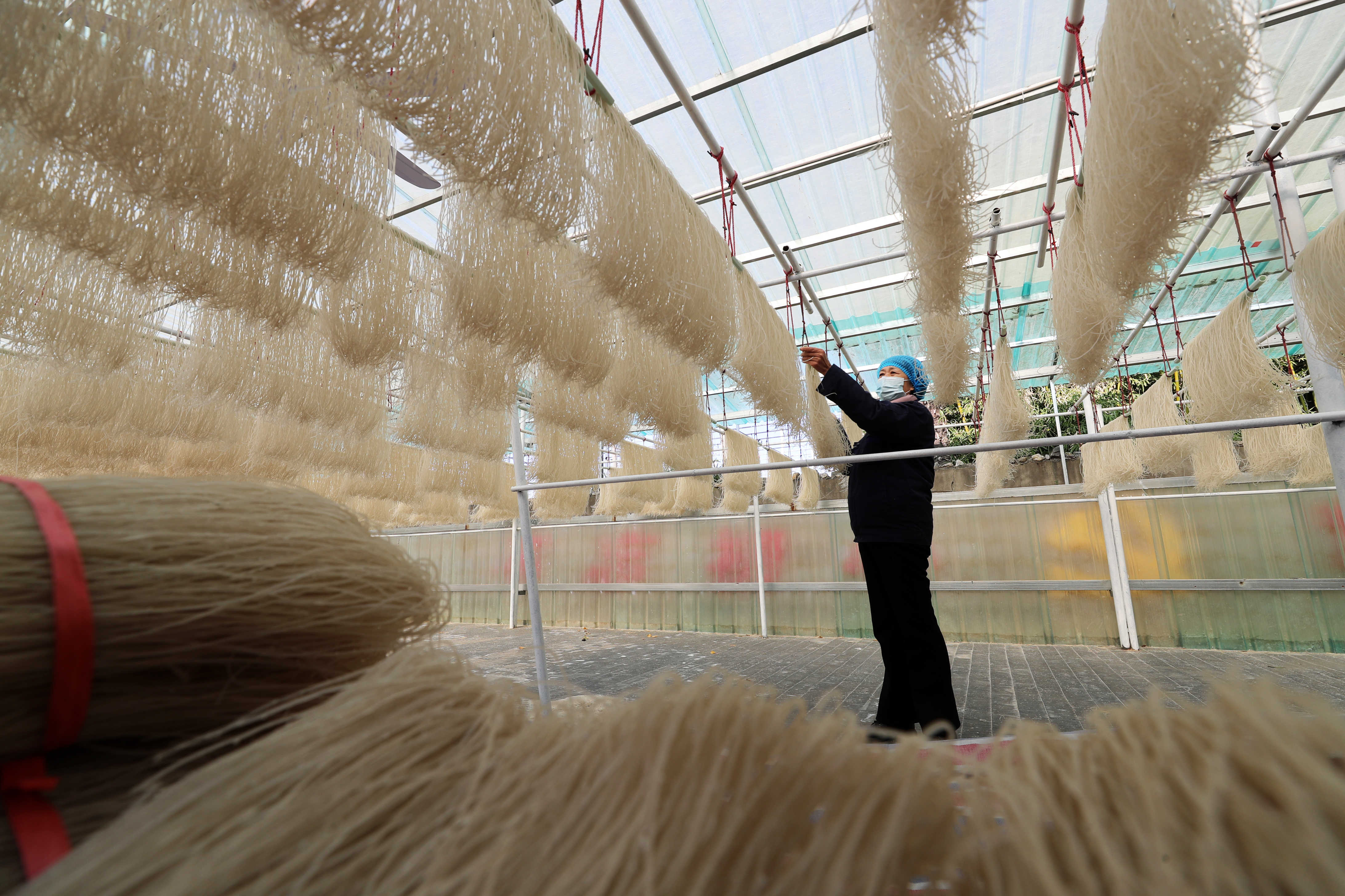 村民在位于禹州市朱阁镇北郝庄村的河南省盛田农业有限公司晾晒红薯粉条。