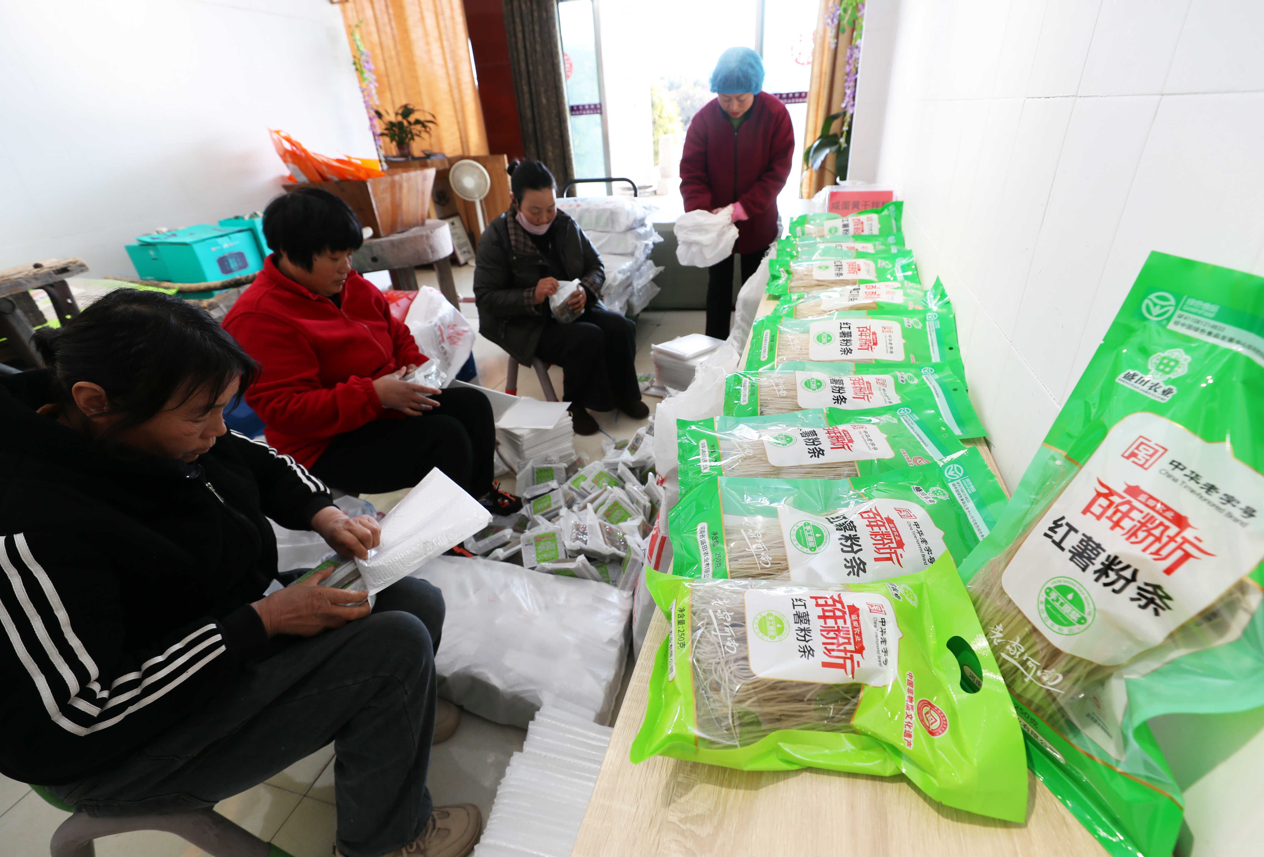 村民在位于禹州市朱阁镇北郝庄村的河南省盛田农业有限公司包装外销的红薯粉条。
