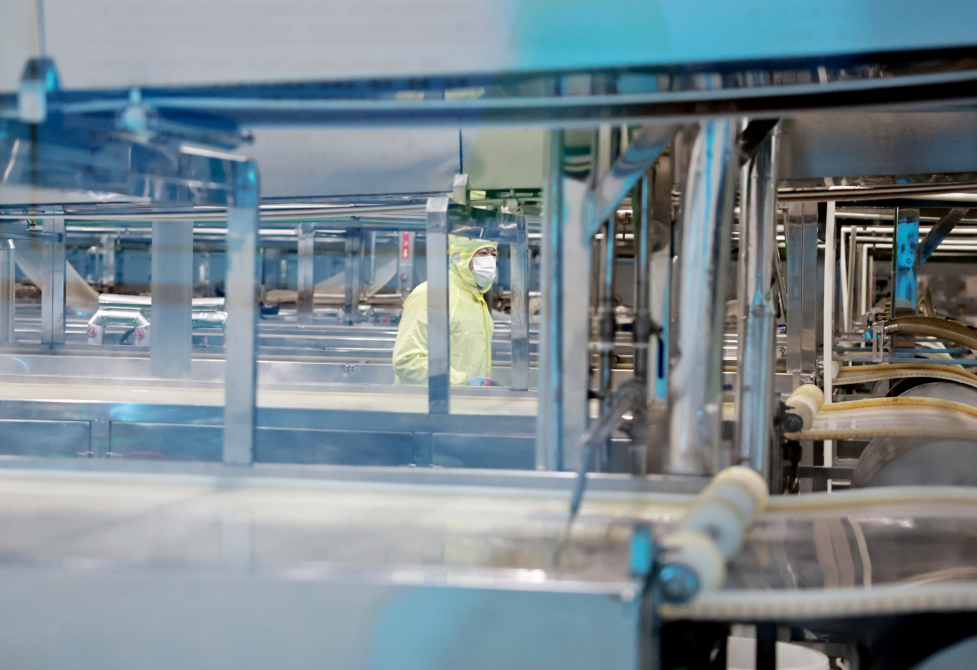 1月14日,在魏都区高新城乡融合产业园,许昌晟隆实业有限公司员工在腐竹、豆油皮自动化生产线上作业。该项目采用“干豆制浆、大豆全组分利用”制浆系统,助力企业成为国内首家生产“全豆腐竹”的豆制品企业。“全豆腐竹”与传统工艺不同,在制浆时不除渣,实现大豆全物质利用,既提升原料利用率,又保留更多营养成分,推动许昌豆制品产业向“智能化、绿色化”升级,为地方特色农产品深加工发展注入新动能。