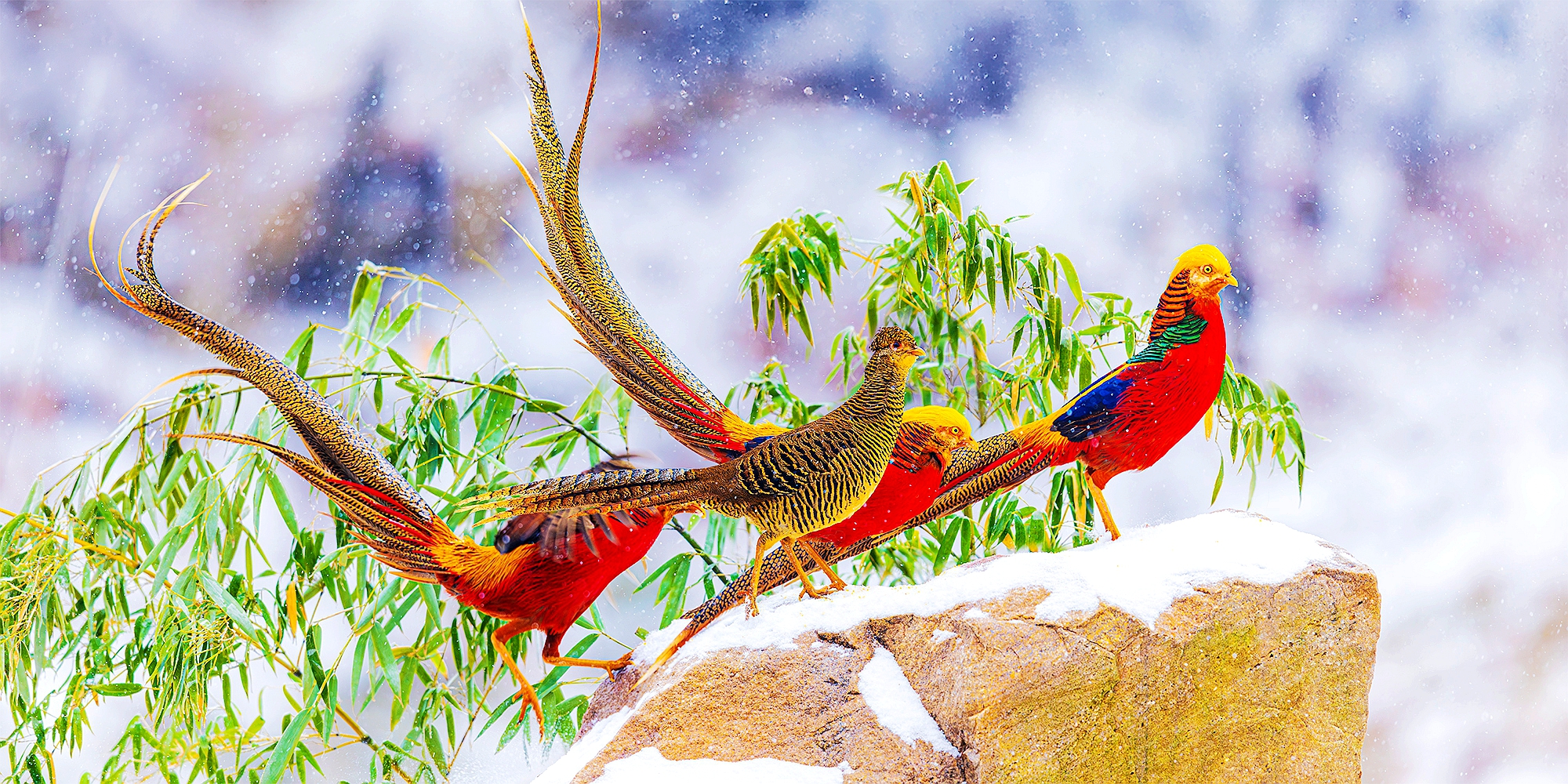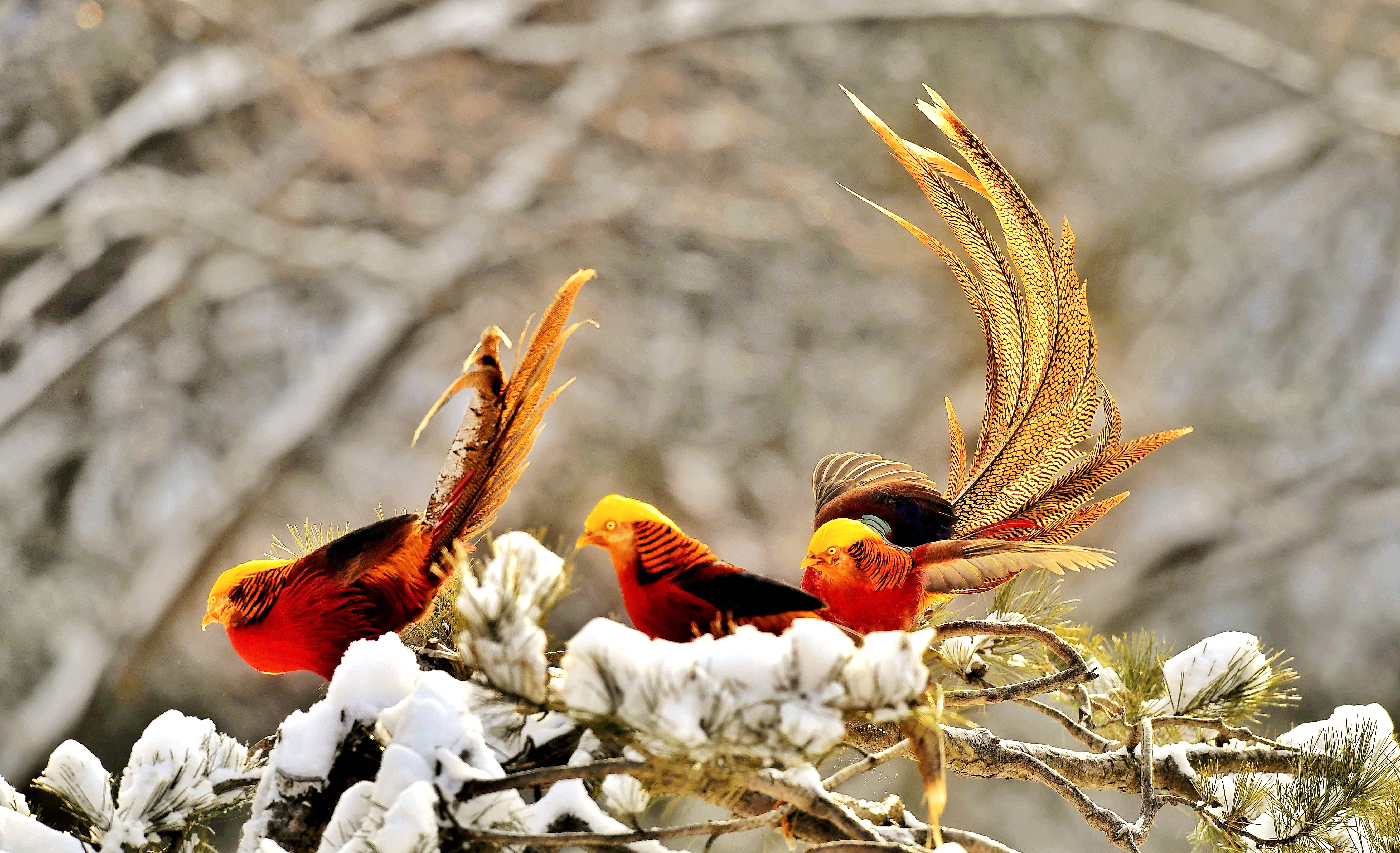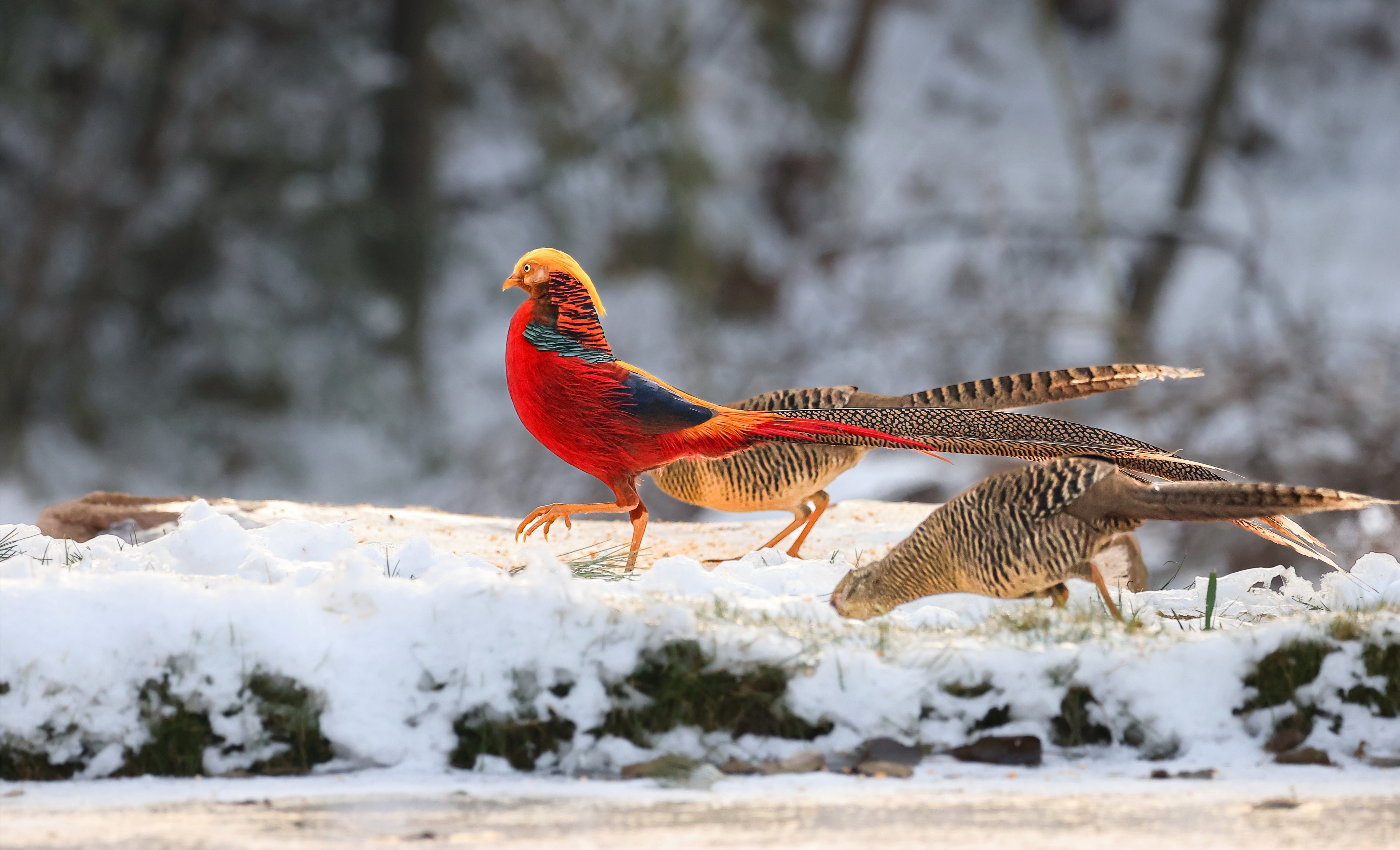1月29日,禹州市磨街乡大涧村牛头山的皑皑雪地上,国家二级保护动物红腹锦鸡穿梭其间,或嬉戏打闹,或低头觅食,为冬日山野添上灵动色彩。近年来,禹州市践行 “两山理念”,狠抓生态绿化与保护,红腹锦鸡在多个山区频频现身,仅牛头山就有2群50多只,这里也成为中原地区最佳红腹锦鸡拍摄基地,每逢雪天,都会吸引各地摄影爱好者前来打卡创作。
