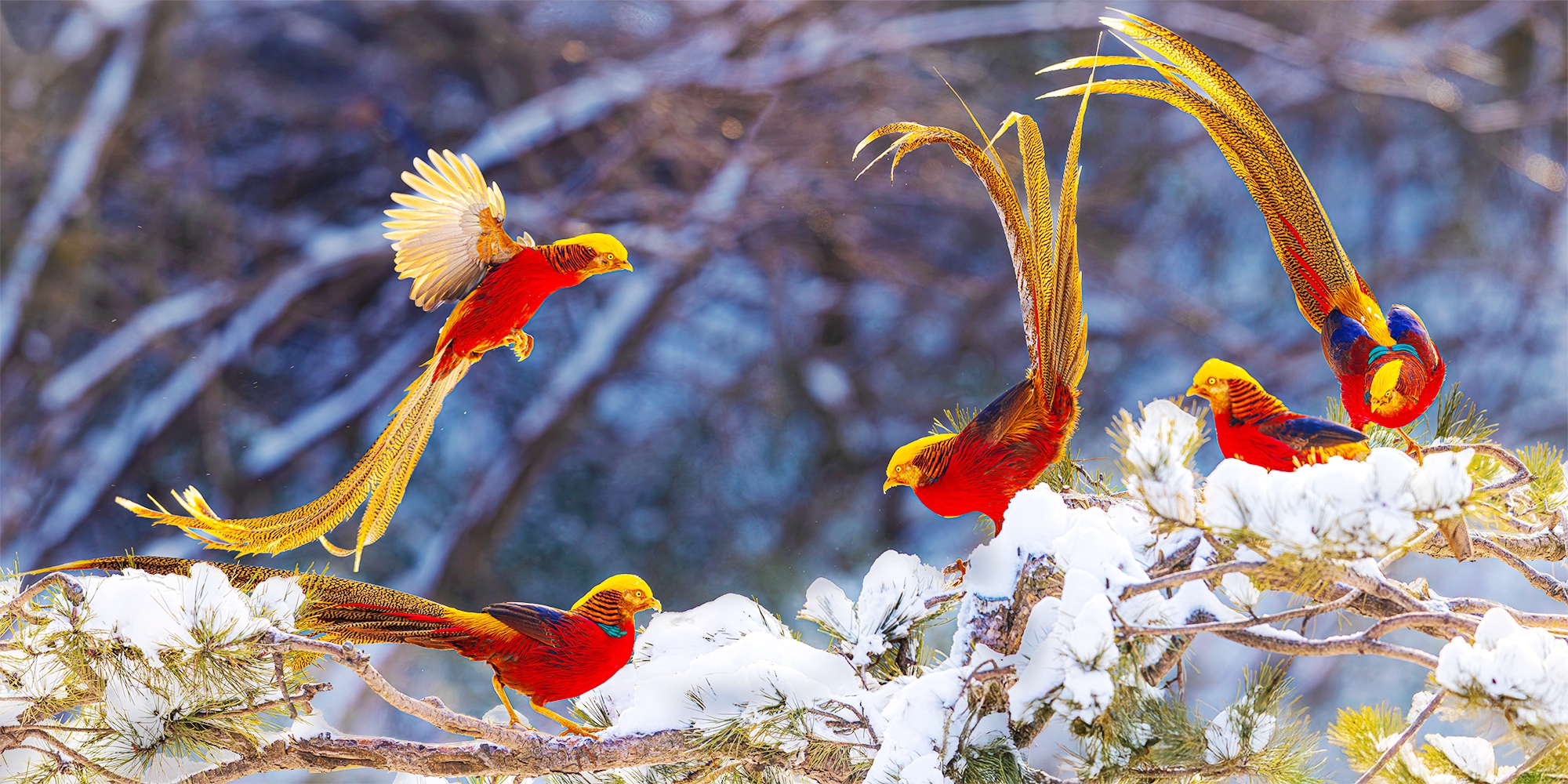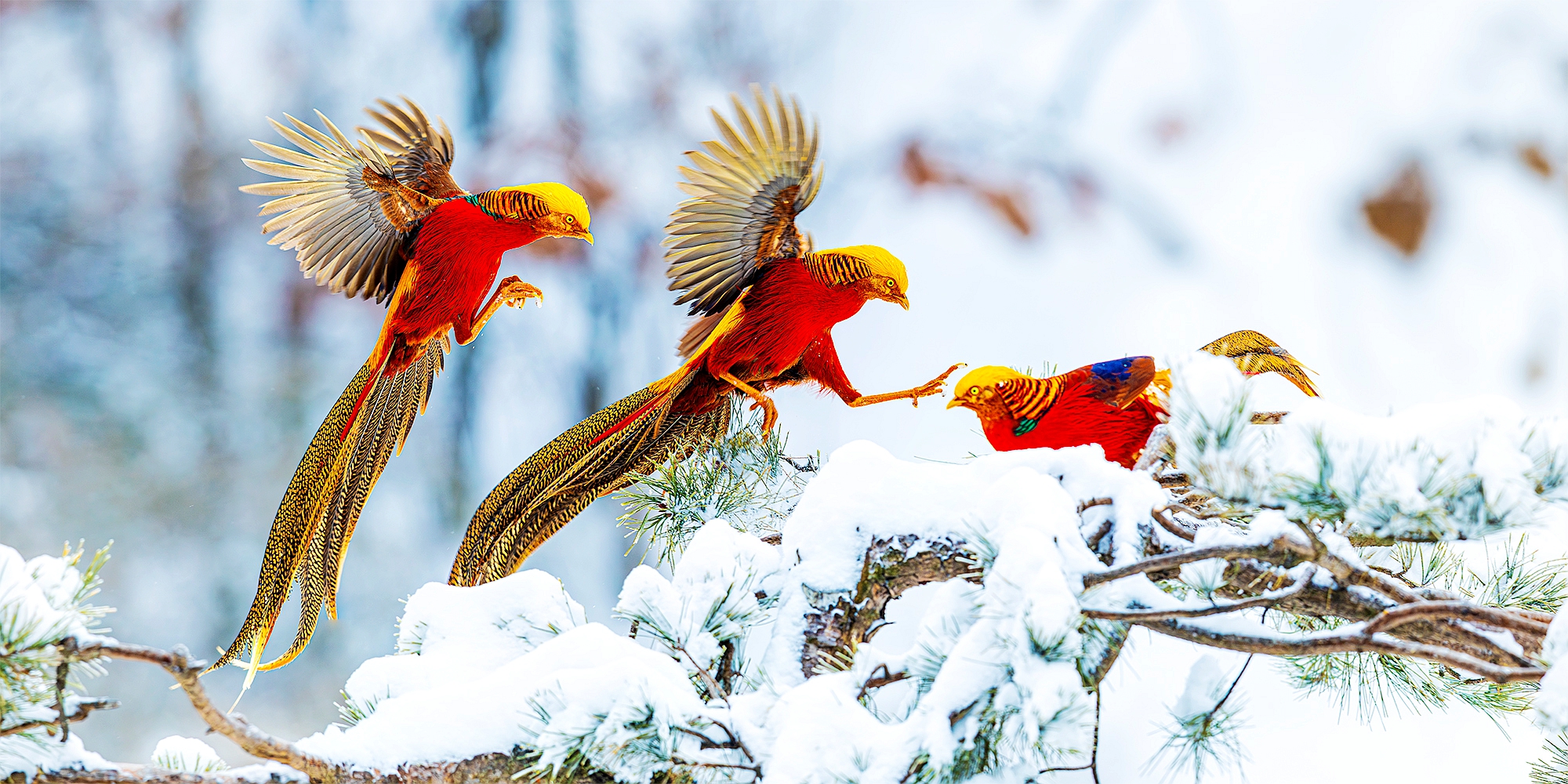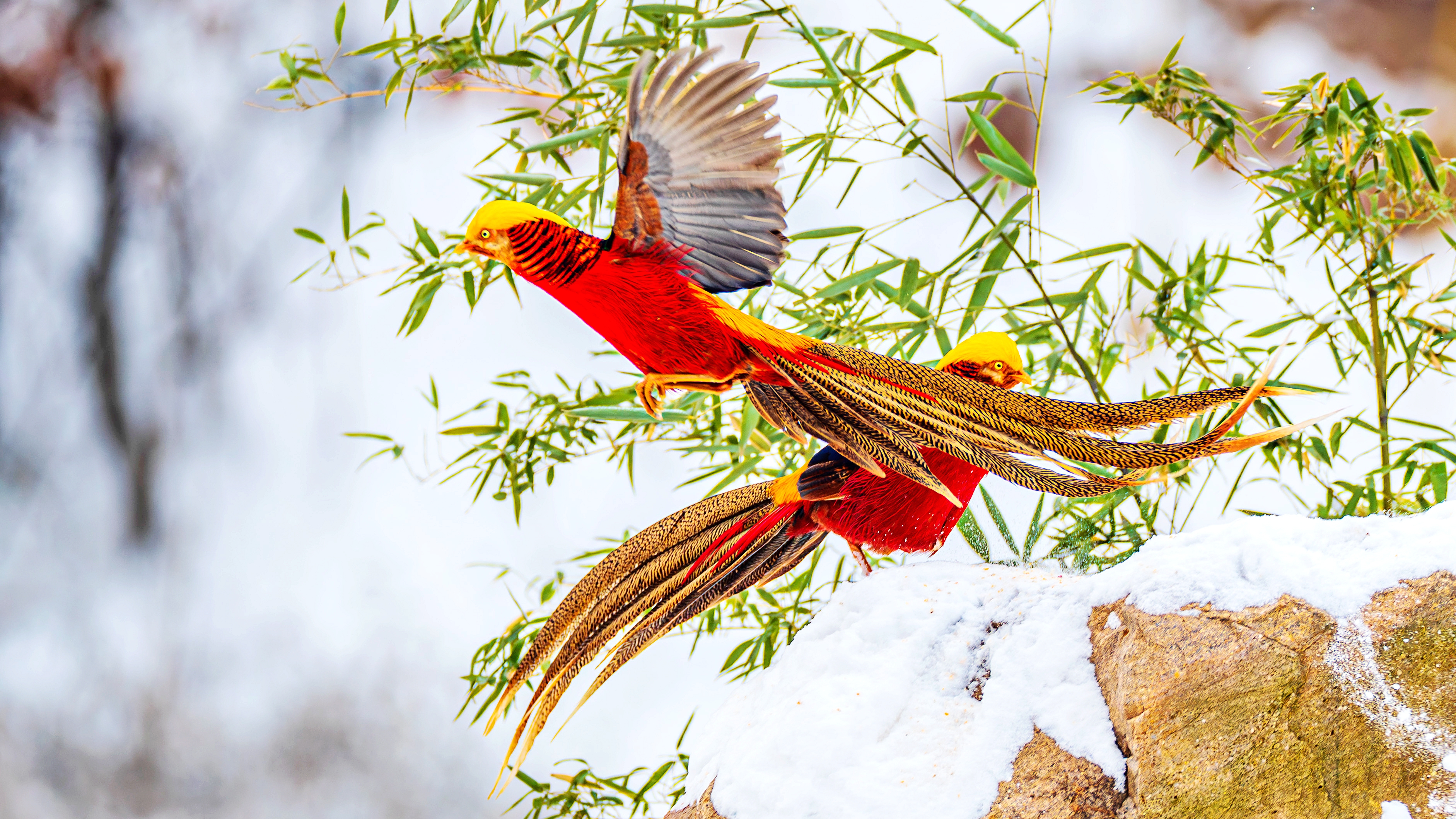 1月29日,禹州市磨街乡大涧村牛头山的皑皑雪地上,国家二级保护动物红腹锦鸡穿梭其间,或嬉戏打闹,或低头觅食,为冬日山野添上灵动色彩。近年来,禹州市践行 “两山理念”,狠抓生态绿化与保护,红腹锦鸡在多个山区频频现身,仅牛头山就有2群50多只,这里也成为中原地区最佳红腹锦鸡拍摄基地,每逢雪天,都会吸引各地摄影爱好者前来打卡创作。