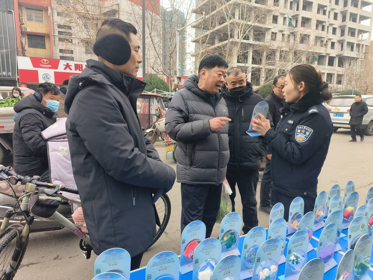 “答对三题,平安福袋带回家!”民警推出禁毒知识问答,将年俗与禁毒巧妙嫁接。福袋内春联、“福”字、围裙等一应俱全,印着“远离毒品千家暖”等口号。群众争相抢答,举着福袋喜笑颜开:“这是警察送的健康福!”民辅警还化身“禁毒货郎”,推着“流动小摊车”穿梭巷道,卖花生摊前递上禁毒春联,糖葫芦车旁讲解毒品伪装。没有生硬说教,只有拉家常,禁毒宣传在一递一接间从“被动听”变为“主动要”。
