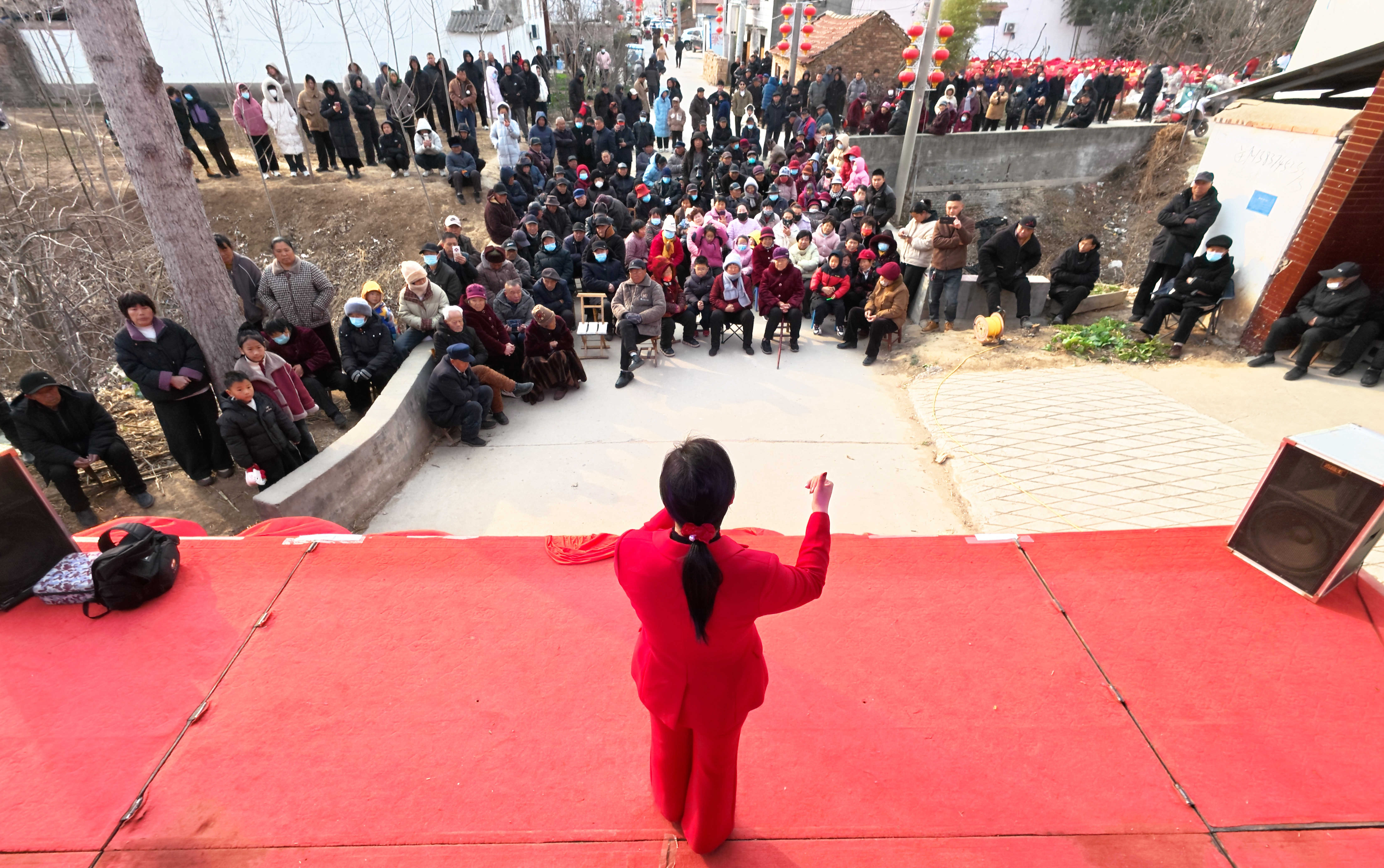 2月15日,鄢陵县马栏镇东章甫社区居民在观看戏曲演出。