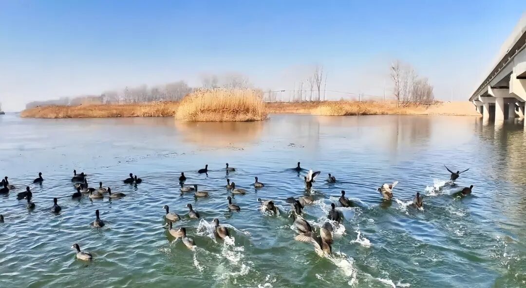 入了七九,豫鲁交界的金堤河一路流淌,松快多了。野鸭三五成群游弋于水面,仔细辨认,其间还出没几对鸳鸯。