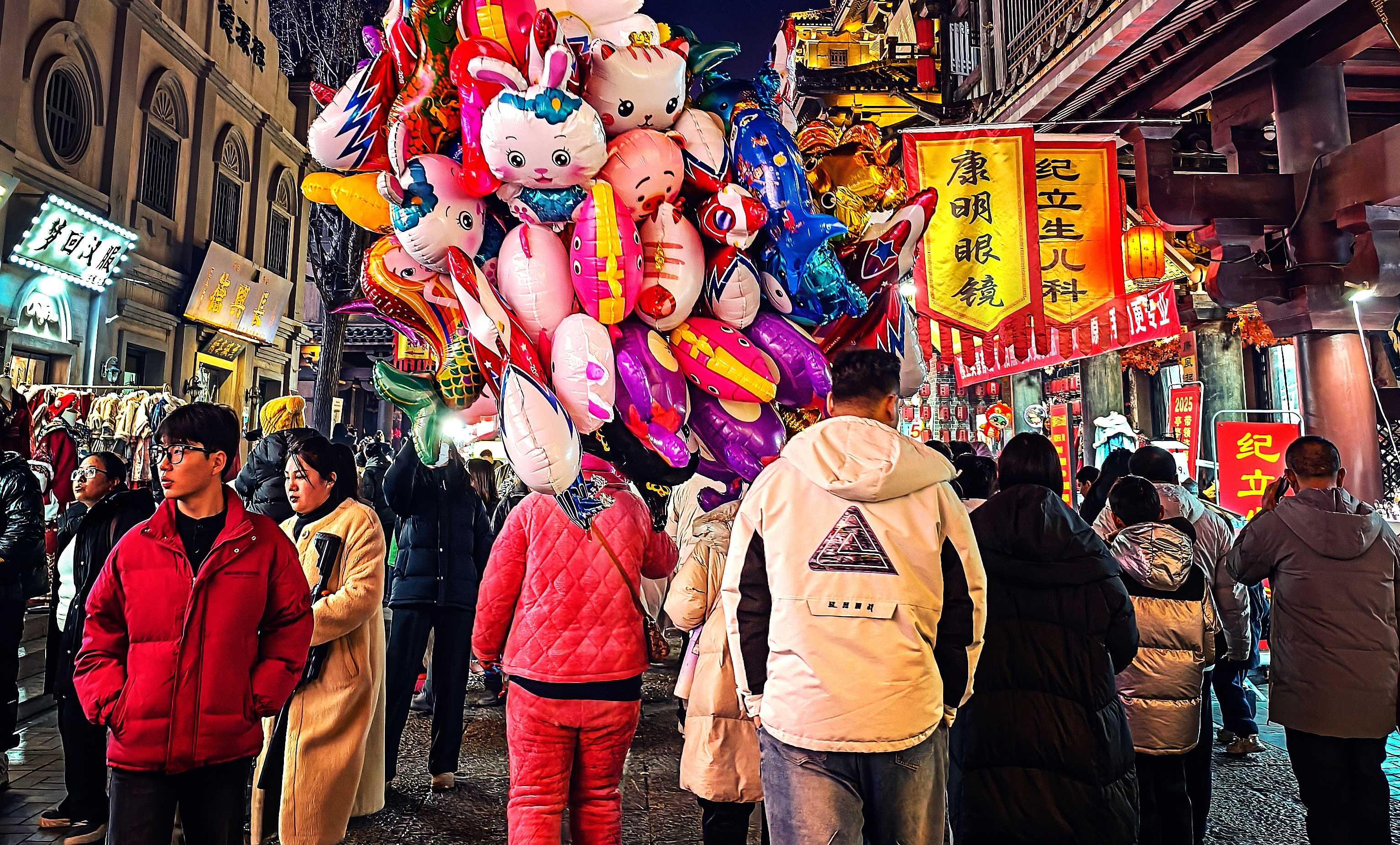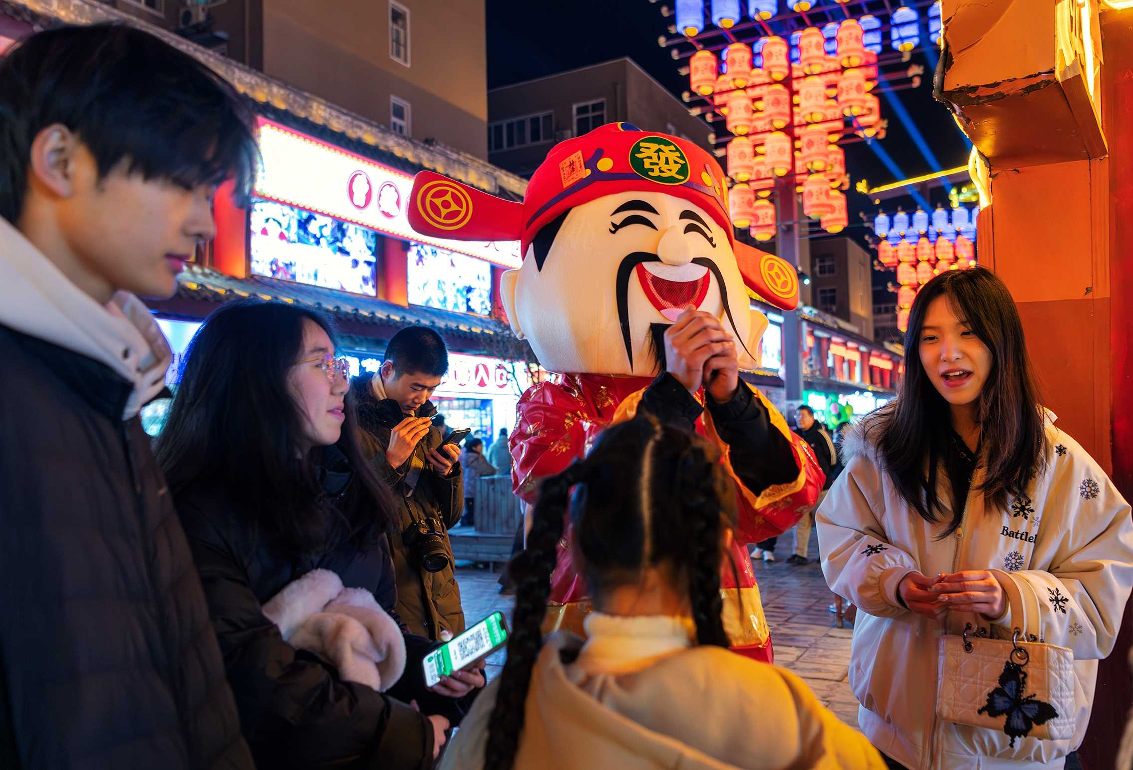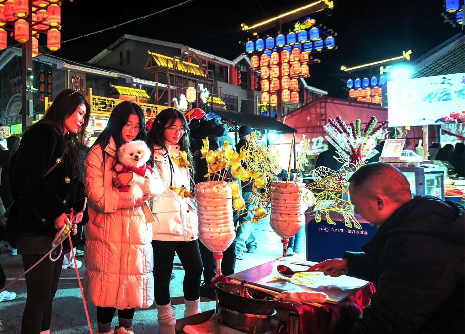 2月18日晚,许昌市曹魏古城景区灯火璀璨、年味浓郁。市民与游客漫步古街,赏花灯、看演出、品非遗、参与互动游戏,在热闹喜庆的氛围中欢度新春佳节,尽显古城夜经济活力。