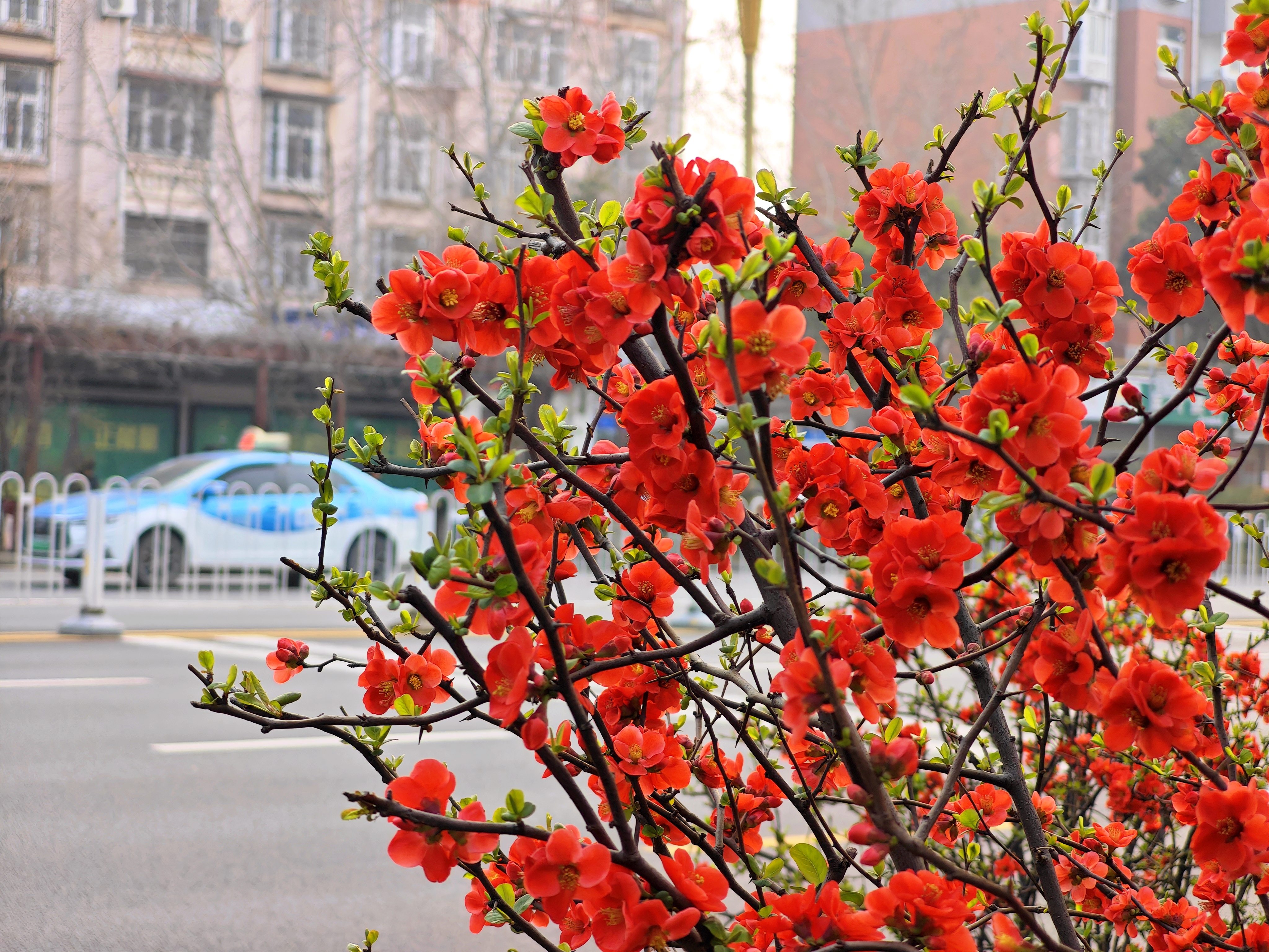蝴蝶广场、清潩河游园的贴梗海棠艳若胭脂,朵朵紧贴枝条绽放,浓烈的色彩像打翻了油画颜料,热烈又惊艳;中央公园的西府海棠成簇盛开,粉白相间的花瓣簇拥枝头,风一吹便轻轻摇曳,缤纷多姿惹人怜;春秋广场、护城河畔的垂丝海棠更是美出圈,柔枝轻垂,粉嫩嫩的小花娇俏动人,不愧是海棠界的“春日仙子”,风拂花枝时,花瓣轻颤,宛若少女含笑;木瓜海棠树形挺拔,花色绚丽,开花后结出的果实秋来飘香,成了游园里四季皆美的独特景致。