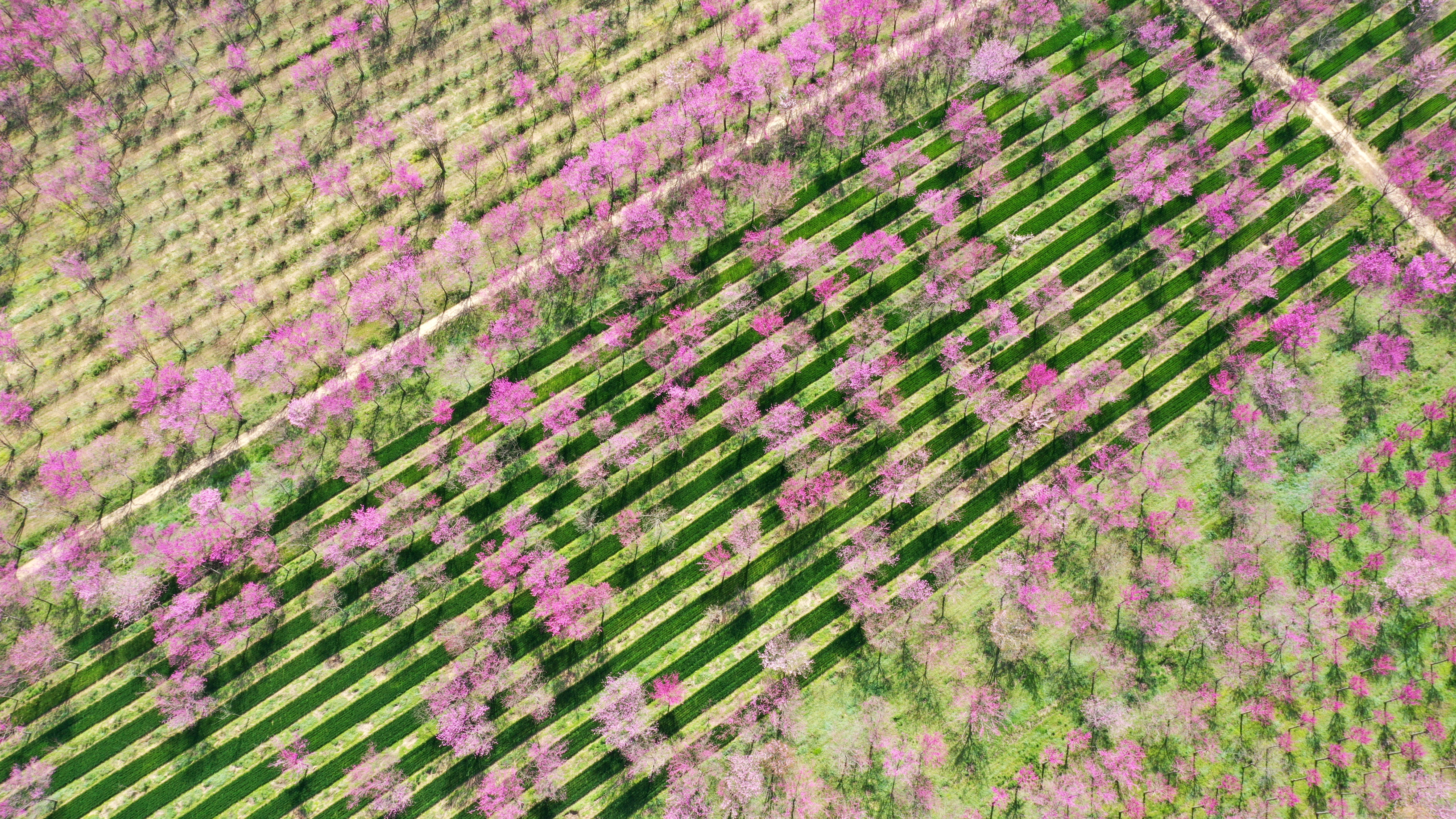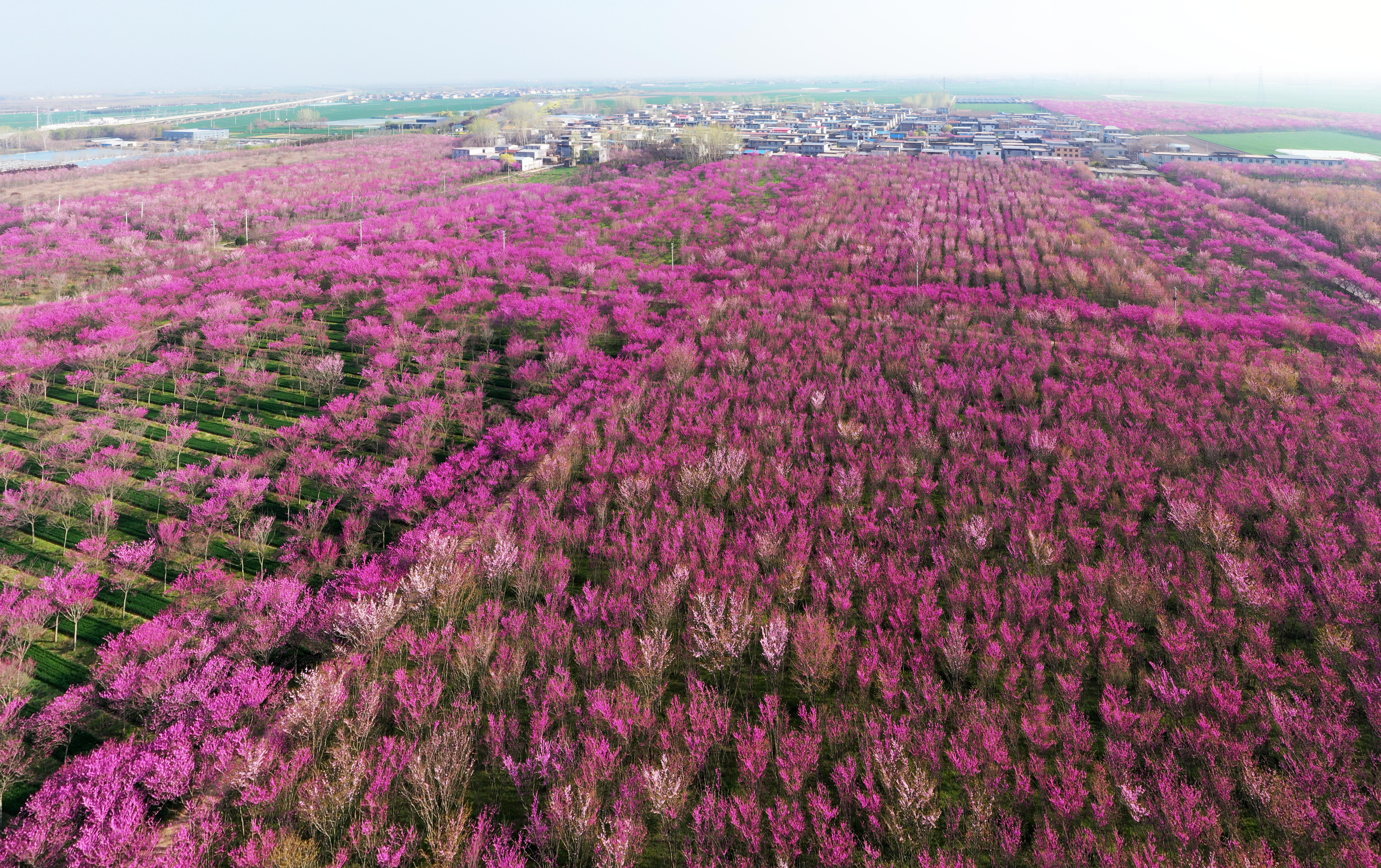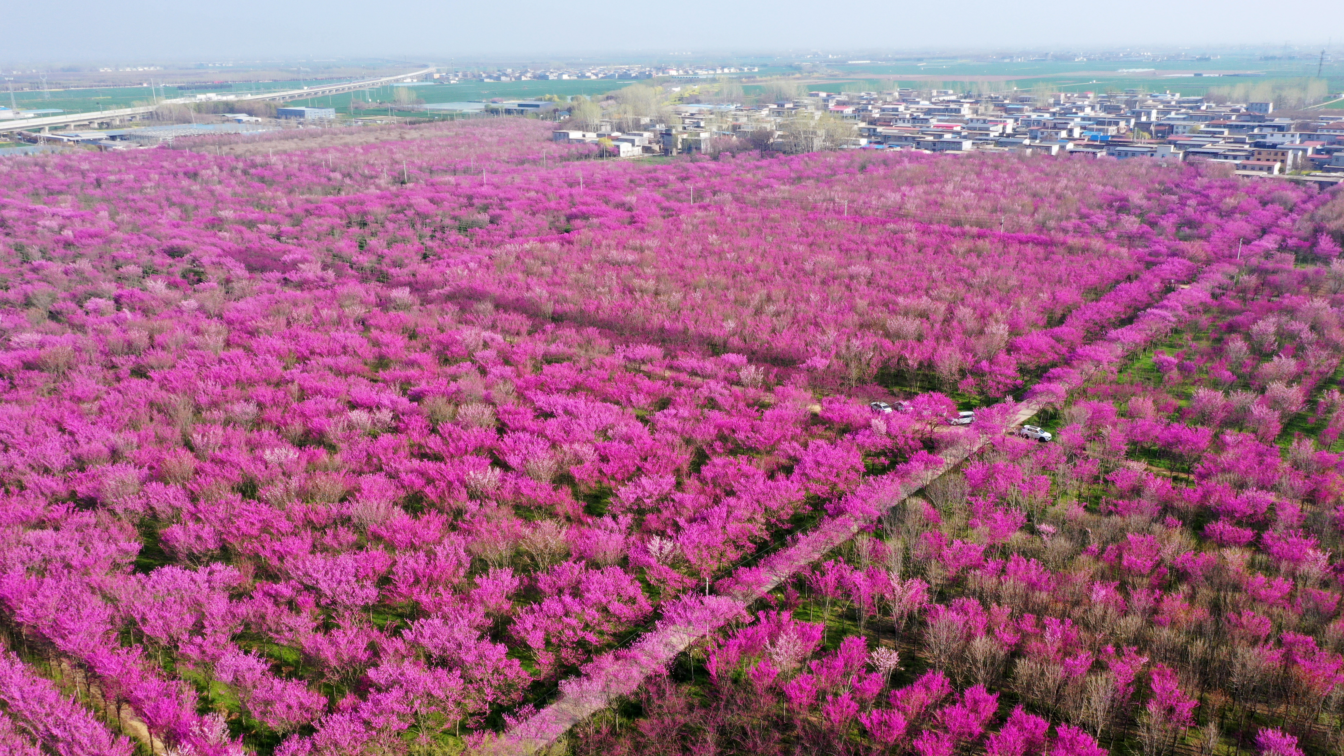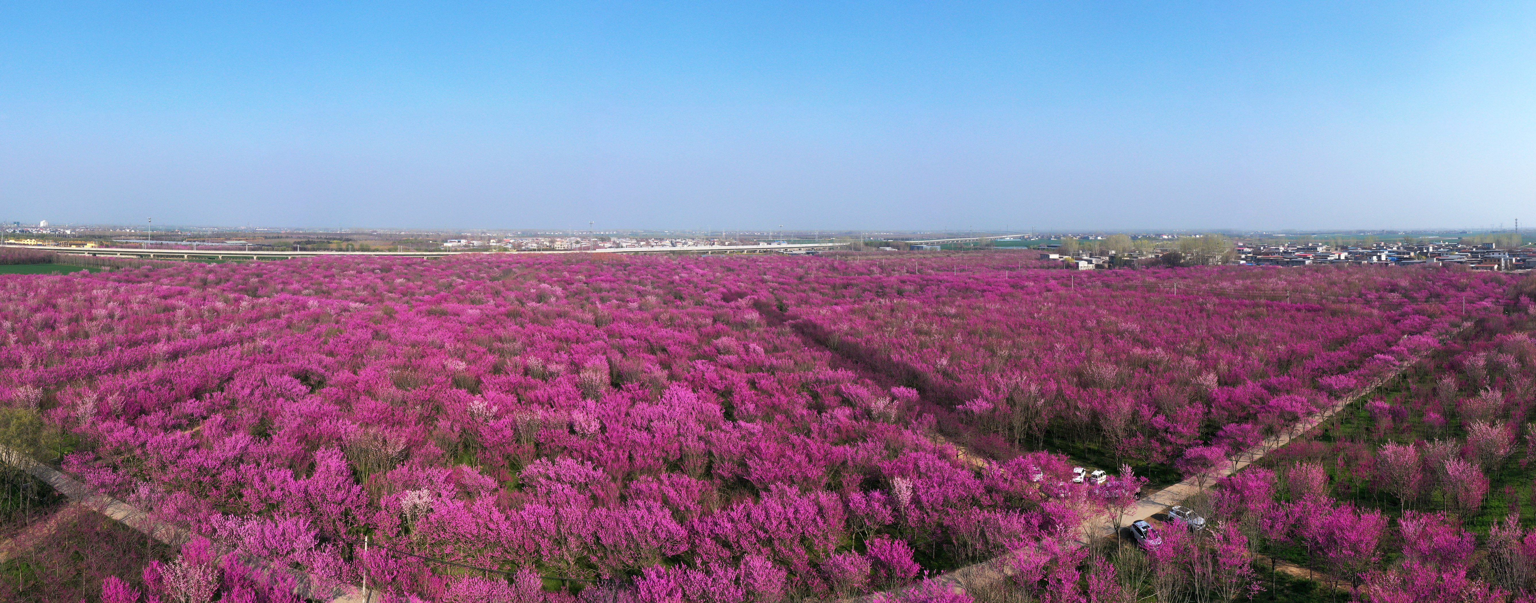 这是3月28日在建安区小召乡拍摄的紫荆花海(无人机照片)。