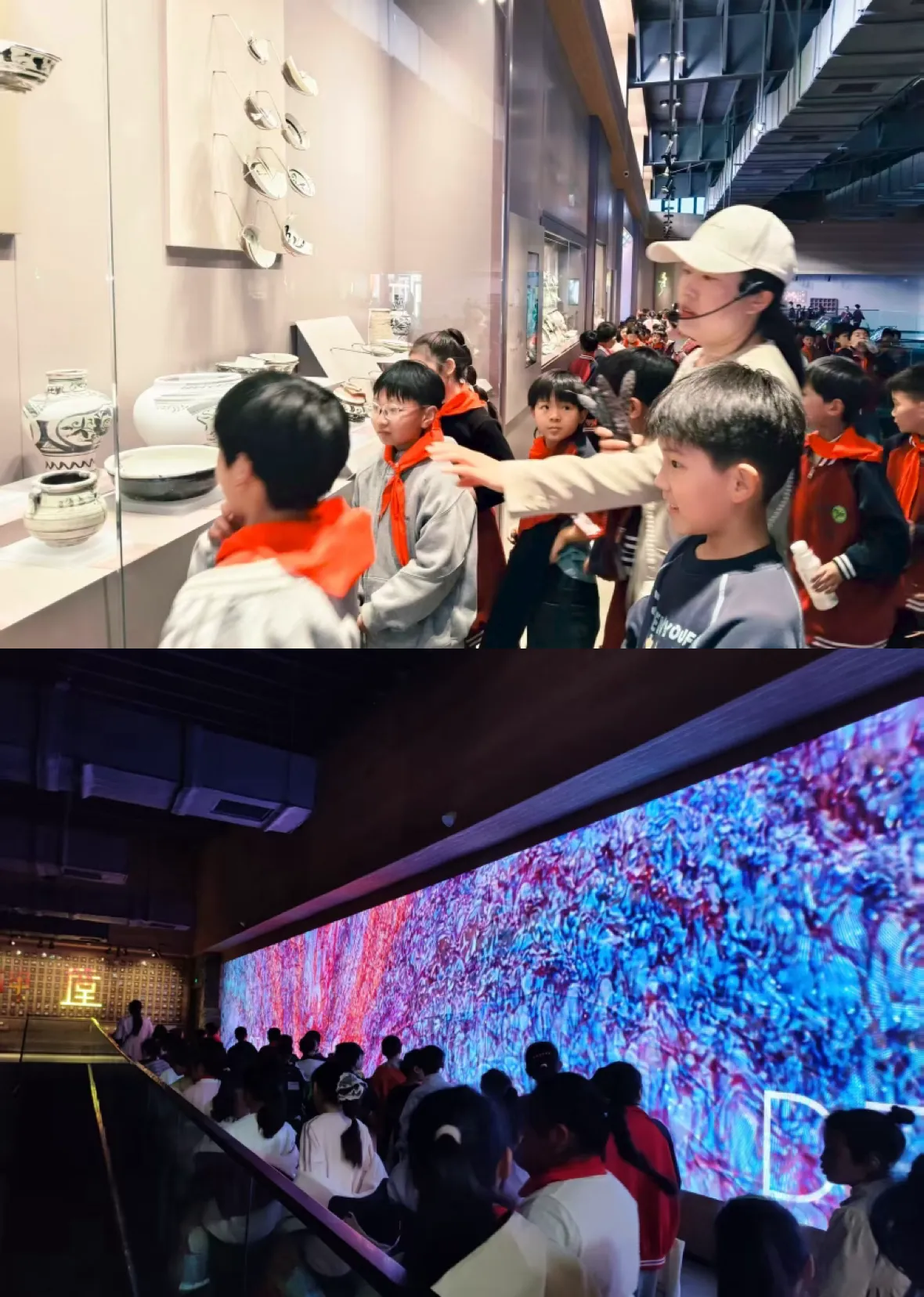 神垕老街,青砖黛瓦。低年级的孩子们在老师的带领下,缓步穿行于斑驳门楣与百年窑坊之间,开展实践活动。大家认真聆听讲解员介绍老街的历史沿革以及这里曾经发生的革命故事,通过实地参观,深刻感受到先辈们不屈不挠的奋斗精神,纷纷表示要珍惜今天的幸福生活。